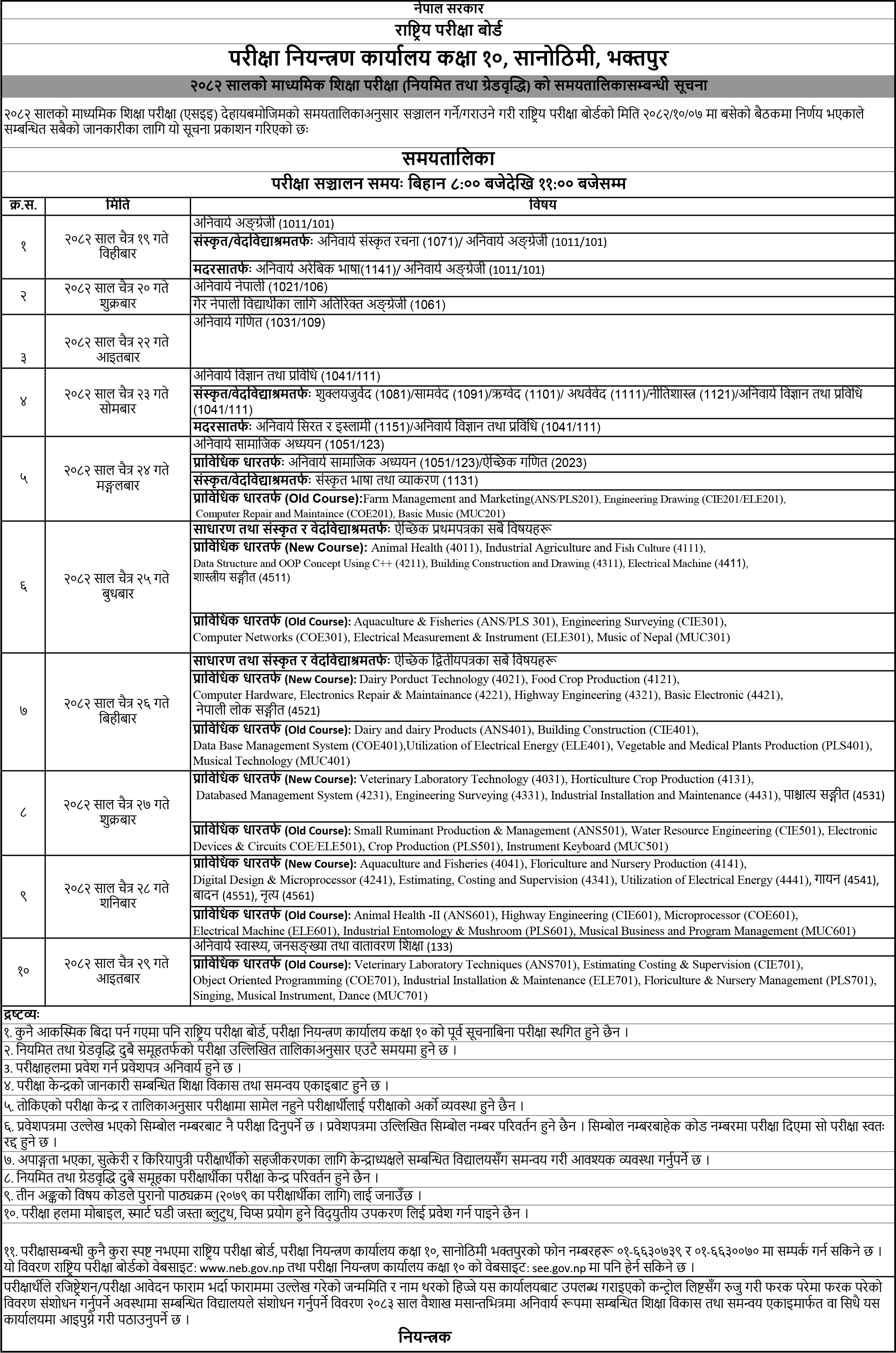 SEE परीक्षा २०८२ समयतालिका ।